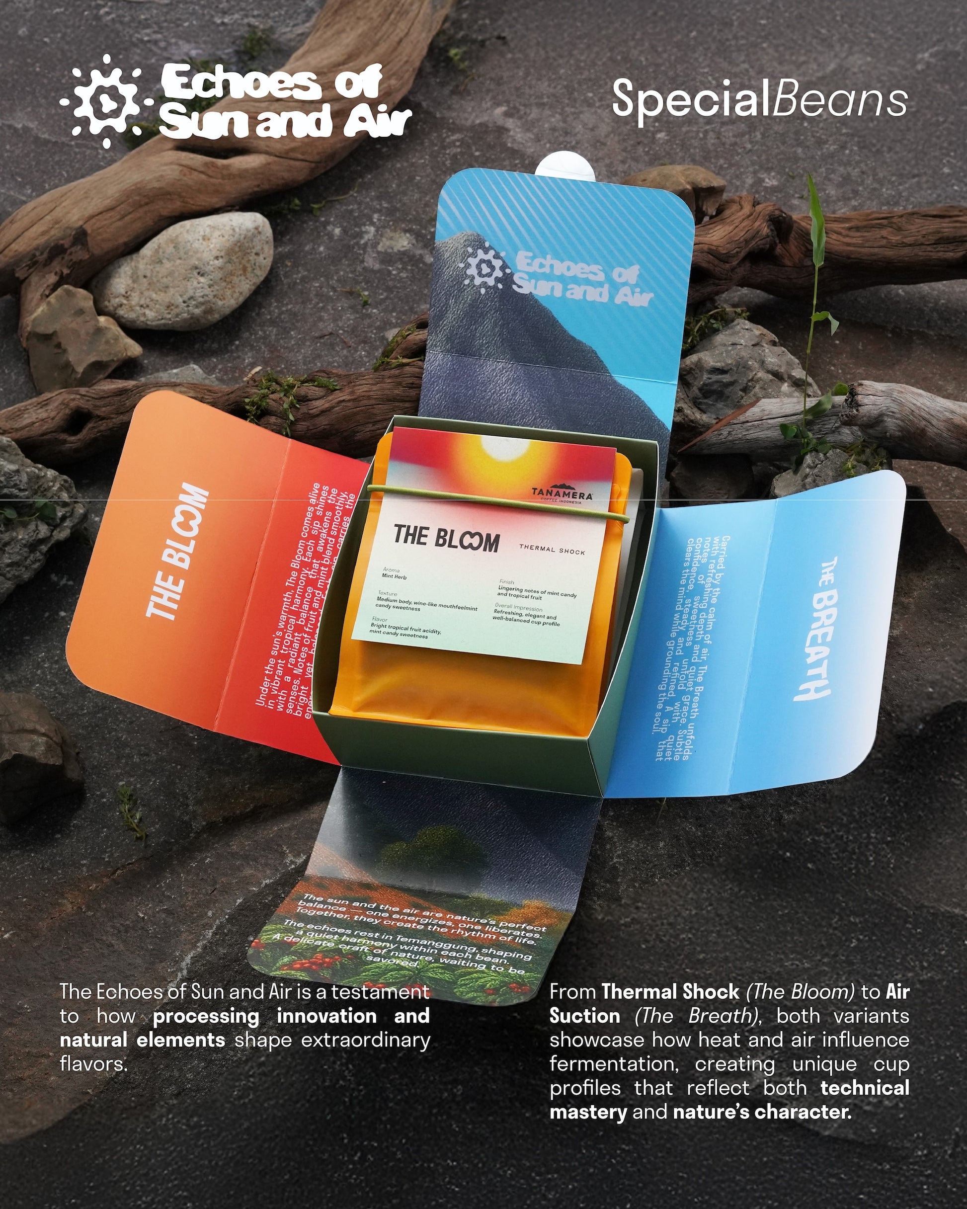 Explore two distinct expressions of Typica varieties from Temanggung, each shaped by the interplay of nature and processing innovation. We present two coffees from one origin, processed in two unique ways, to reveal the profound impact of heat and air on flavour.